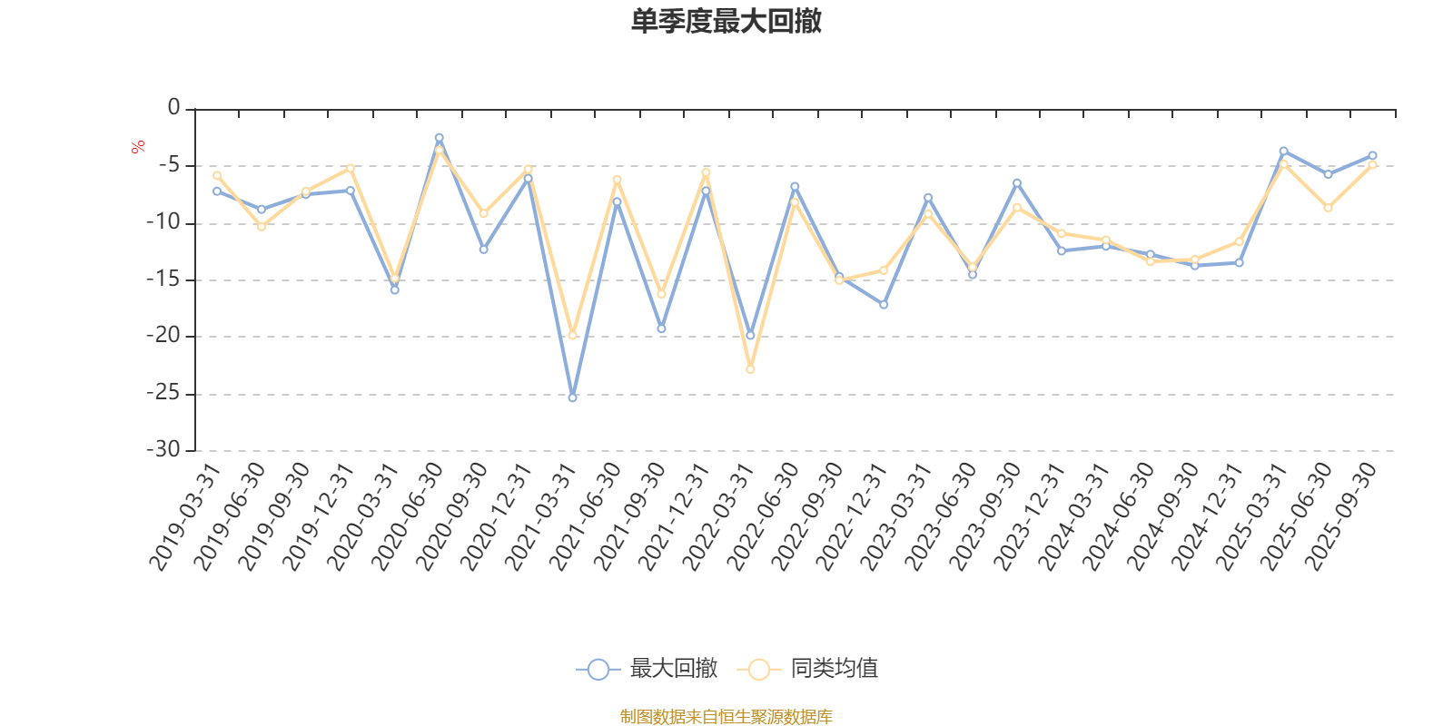 截至10月24日,基金近三年最大回撤为39.3%,同类可比基金排名23/40。单季度最大回撤出现在2021年一季度,为25.36%。