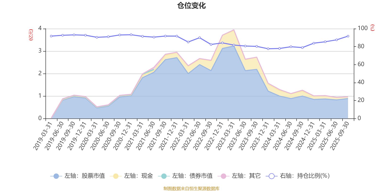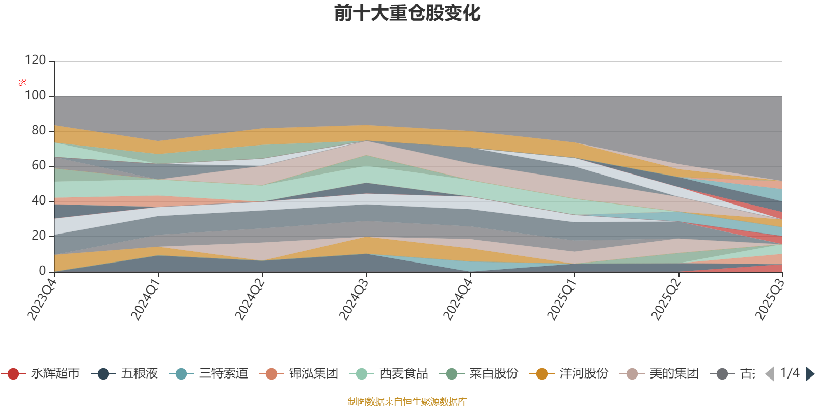 该基金持股集中度较高。截至2025年三季度末,基金十大重仓股分别是万辰集团、牧原股份、锦泓集团、西麦食品、潮宏基、百润股份、豆神教育、乐普医疗、创源股份、永辉超市。