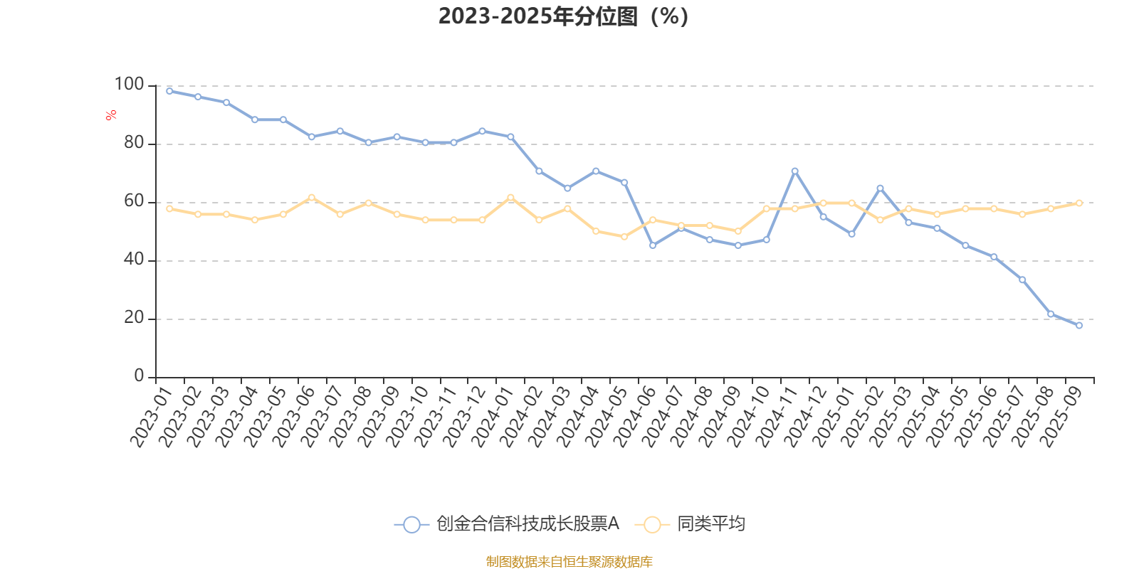 通过所选区间该基金净值增长率分位图,可以观察该基金与同类基金业绩比较情况。图为坐标原点到区间内某时点的净值增长率在同类基金中的分位数。