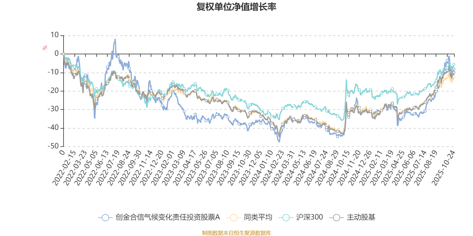 截至10月24日,创金合信气候变化责任投资股票A近三个月复权单位净值增长率为22.21%,位于同类可比基金31/121;近半年复权单位净值增长率为39.61%,位于同类可比基金28/121;近一年复权单位净值增长率为31.93%,位于同类可比基金44/115;近三年复权单位净值增长率为20.89%,位于同类可比基金39/85。