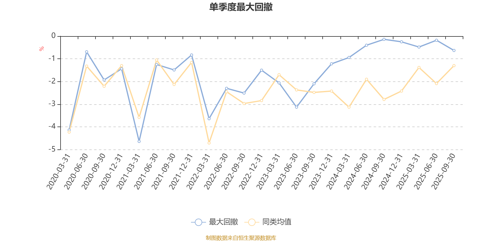 截至10月24日,基金近三年最大回撤为4.48%,同类可比基金排名155/552。单季度最大回撤出现在2021年一季度,为4.64%。