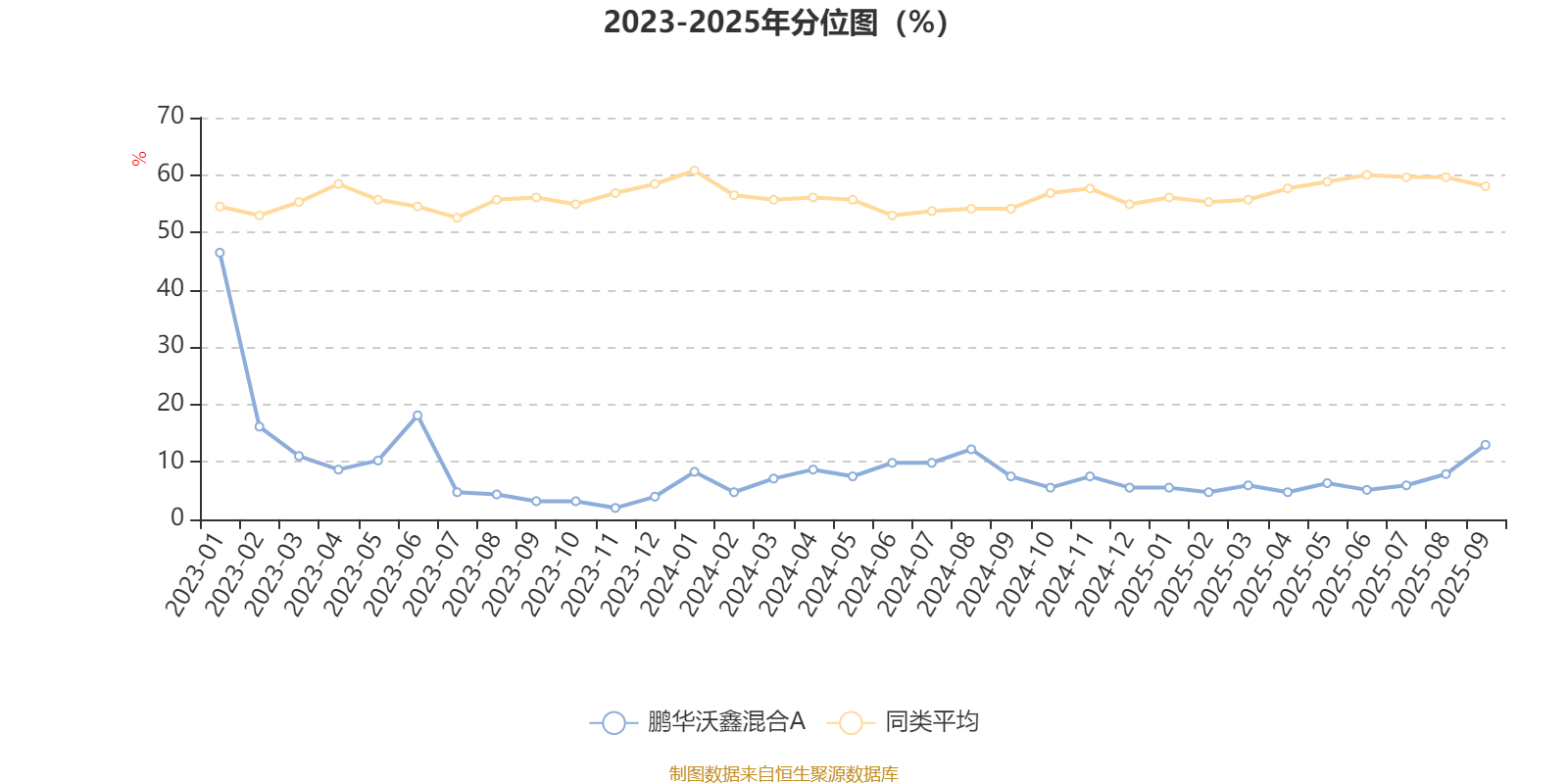 通过所选区间该基金净值增长率分位图,可以观察该基金与同类基金业绩比较情况。图为坐标原点到区间内某时点的净值增长率在同类基金中的分位数。