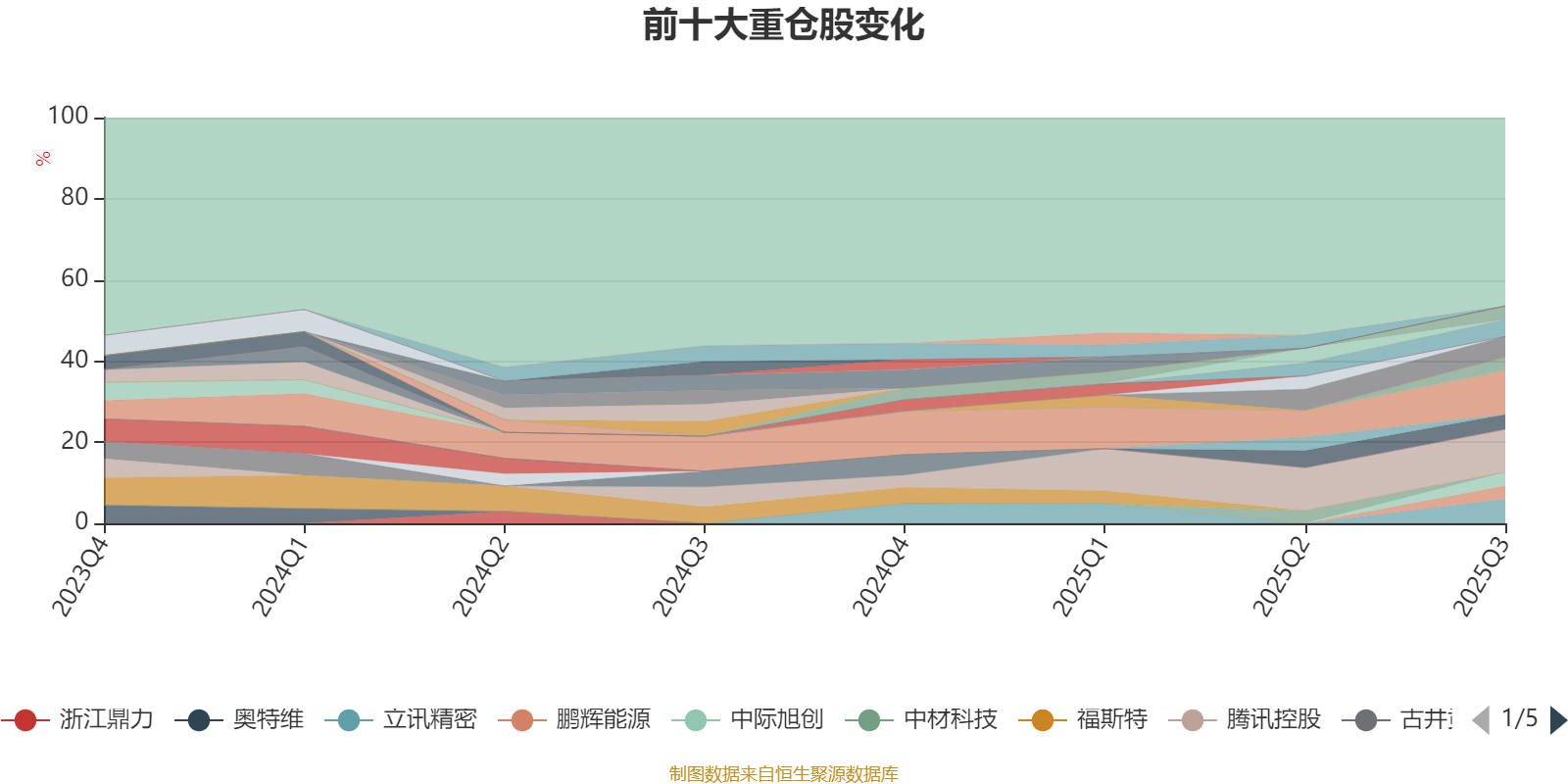 截至2025年三季度末,基金十大重仓股分别是宁德时代、腾讯控股、立讯精密、信达生物、恺英网络、海大集团、中际旭创、歌尔股份、生益科技、鹏辉能源。