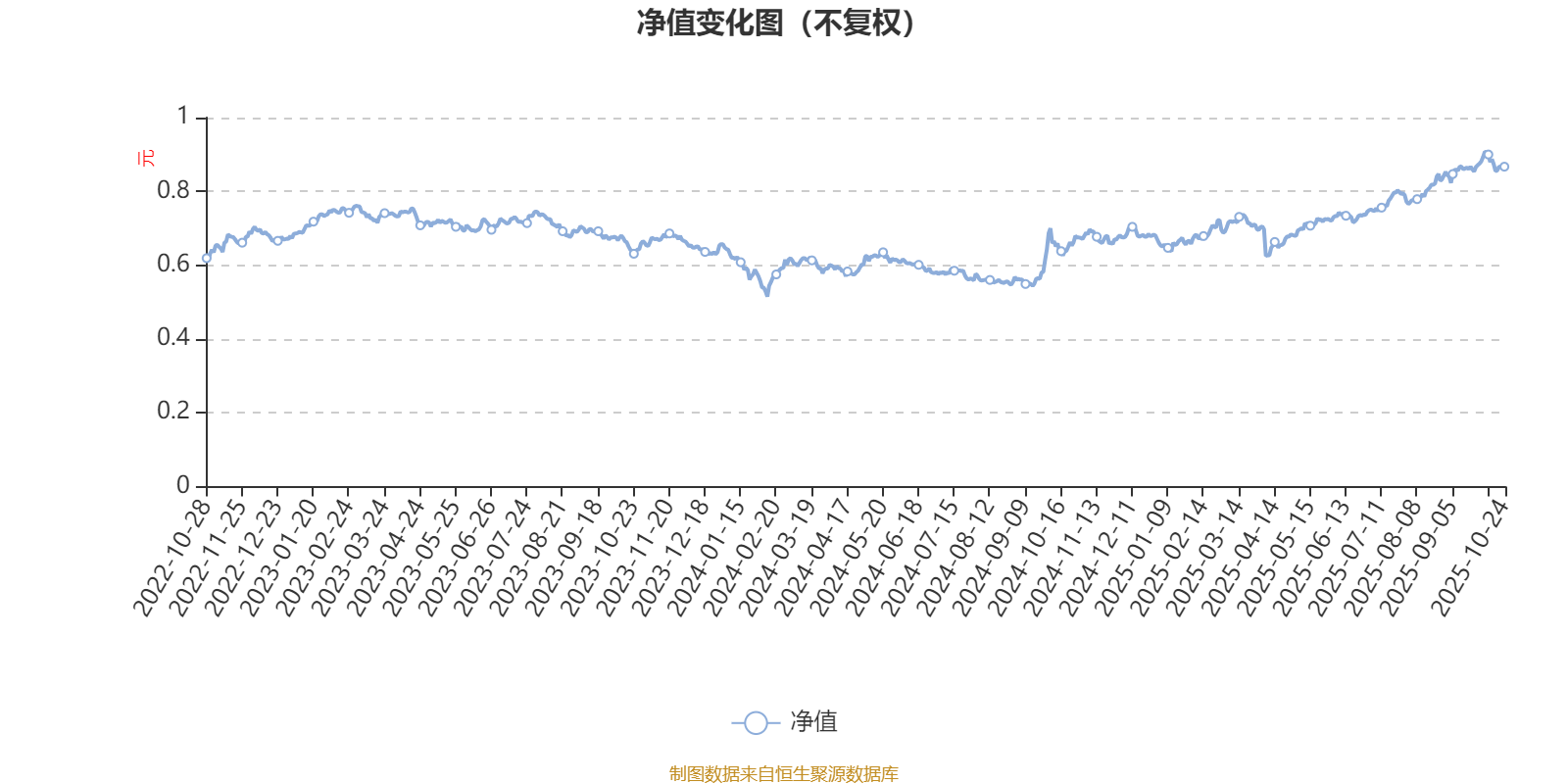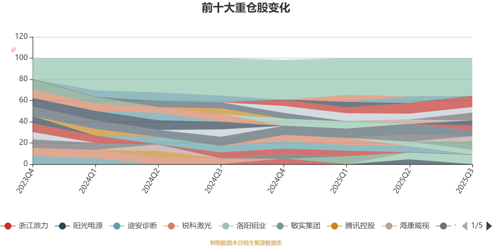 该基金持股集中度较高,近2年前十大重仓股集中度长期超过60%。截至2025年三季度末,基金十大重仓股分别是江山股份、洛阳钼业、亨通光电、河钢股份、理想汽车-W、华菱钢铁、兴发集团、宝武镁业、赛轮轮胎、海尔智家。