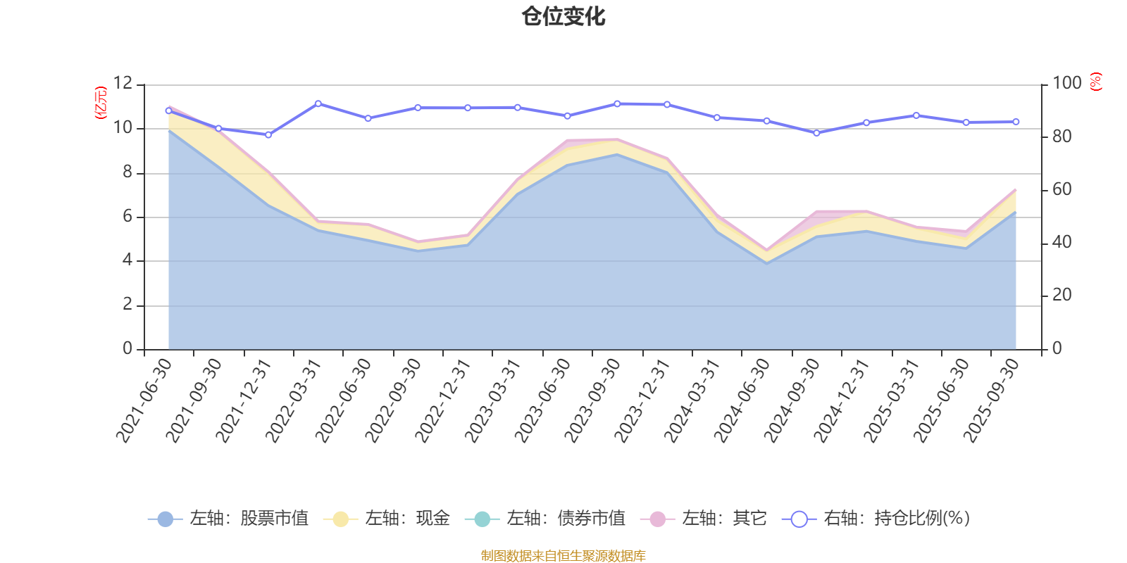 基金管理人在三季报中表示,三季度市场较为积极,成长性行业估值显著修复,而防御型行业的关注度显著下降。以反内卷为核心催化剂的周期行业,景气度总体平稳,需期待后续实质性政策落地,当前的估值依然较低,提供了较高的安全边际。