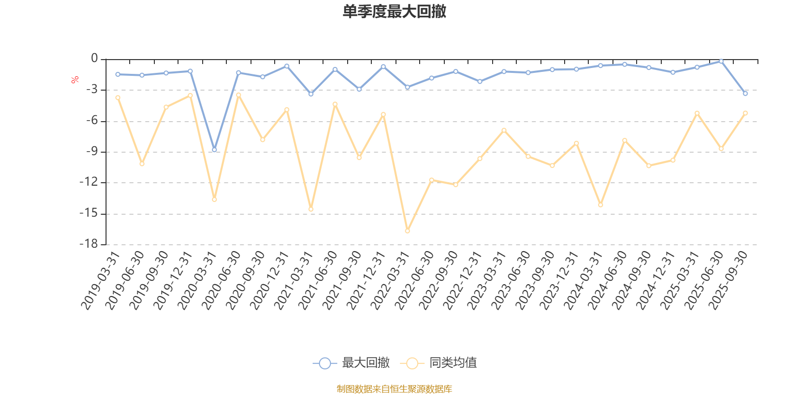截至10月24日,基金近三年最大回撤为3.84%,同类可比基金排名52/1283。单季度最大回撤出现在2020年一季度,为8.8%。