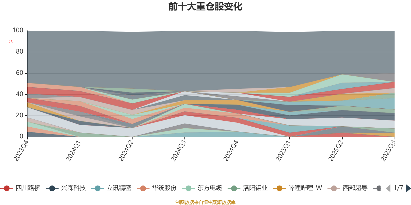 截至2025年三季度末,基金十大重仓股分别是中芯国际、华丰科技、农夫山泉、寒武纪、东鹏饮料、胜宏科技、科沃斯、第四范式、哔哩哔哩-W、长飞光纤光缆。