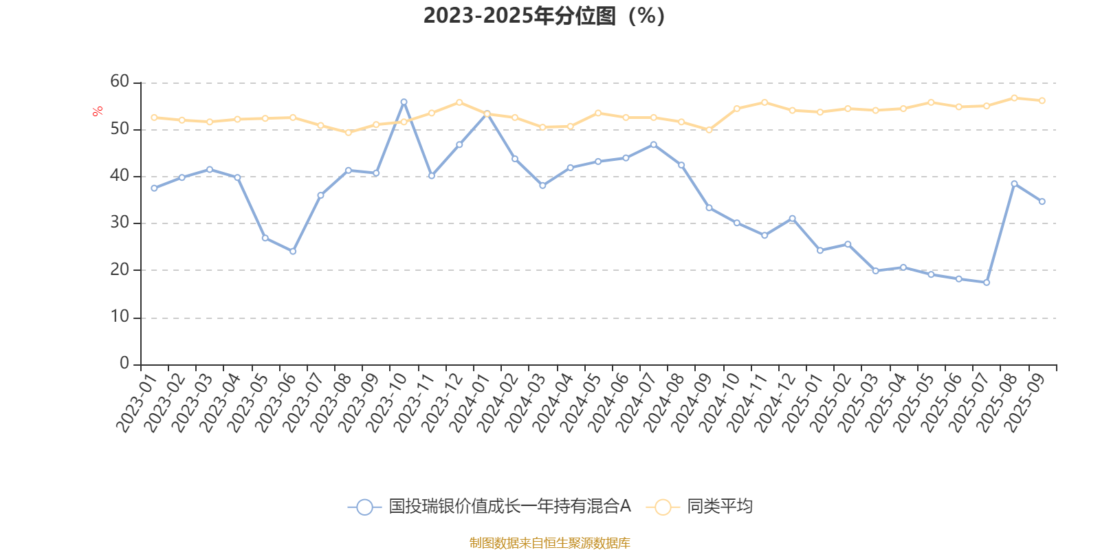 通过所选区间该基金净值增长率分位图,可以观察该基金与同类基金业绩比较情况。图为坐标原点到区间内某时点的净值增长率在同类基金中的分位数。