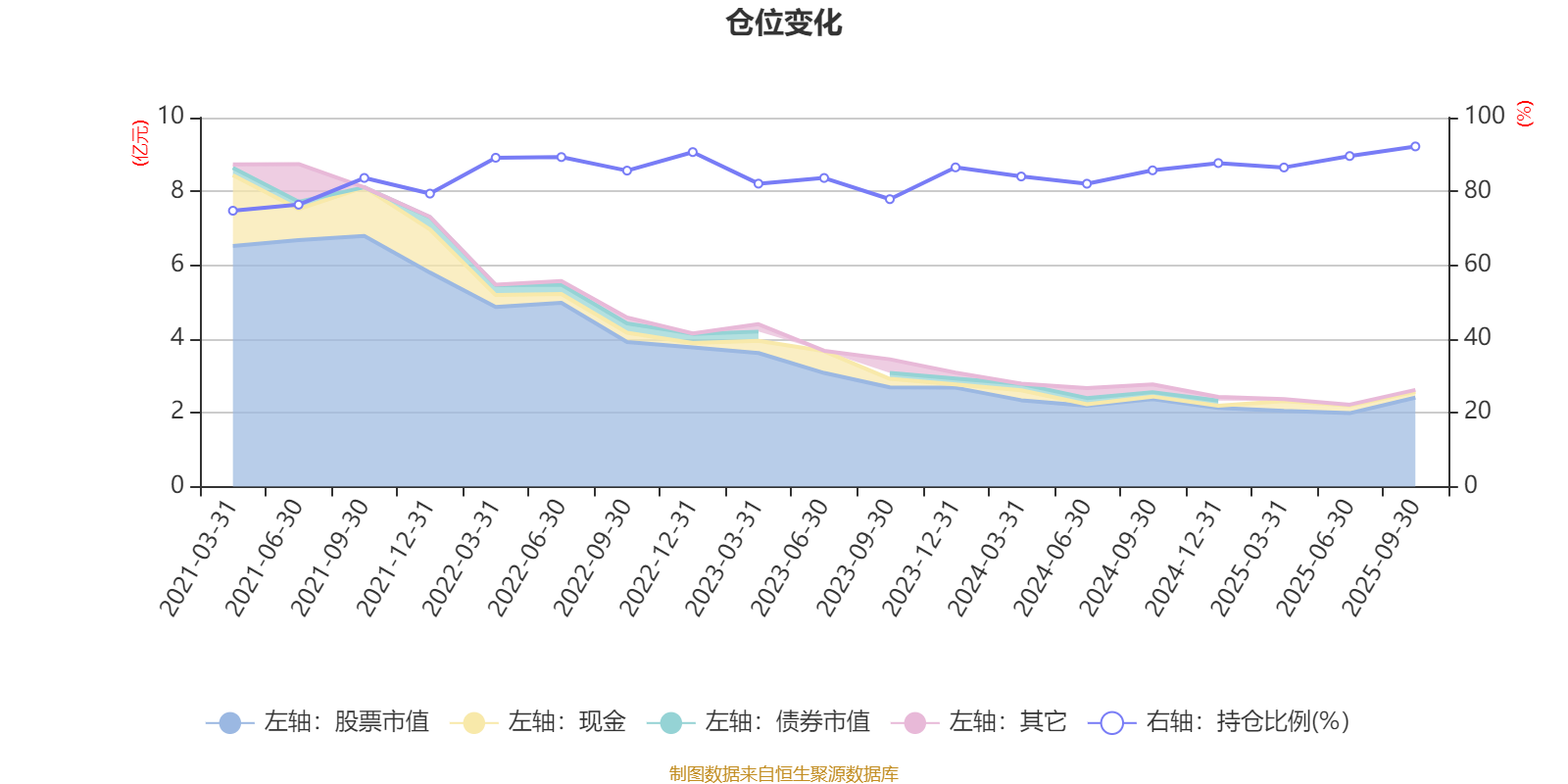 据定期报告数据统计,近三年平均股票仓位为85.71%,同类平均为85.48%。2025年三季度末基金达到92.19%的最高仓位,2021年一季度末最低,为74.76%。