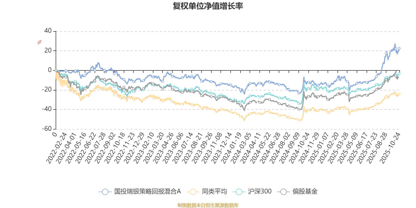 截至10月24日,国投瑞银策略回报混合A近三个月复权单位净值增长率为29.28%,位于同类可比基金76/621;近半年复权单位净值增长率为44.45%,位于同类可比基金101/618;近一年复权单位净值增长率为39.25%,位于同类可比基金174/611;近三年复权单位净值增长率为39.57%,位于同类可比基金106/518。