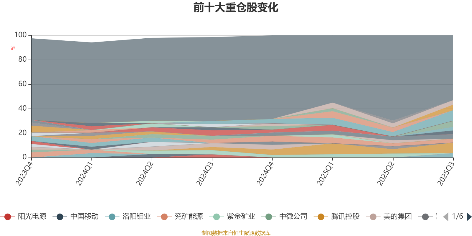 截至2025年三季度末,基金十大重仓股分别是阿里巴巴-W、腾讯控股、海光信息、华虹半导体、快手-W、洛阳钼业、寒武纪、宁德时代、中国铝业、山金国际。