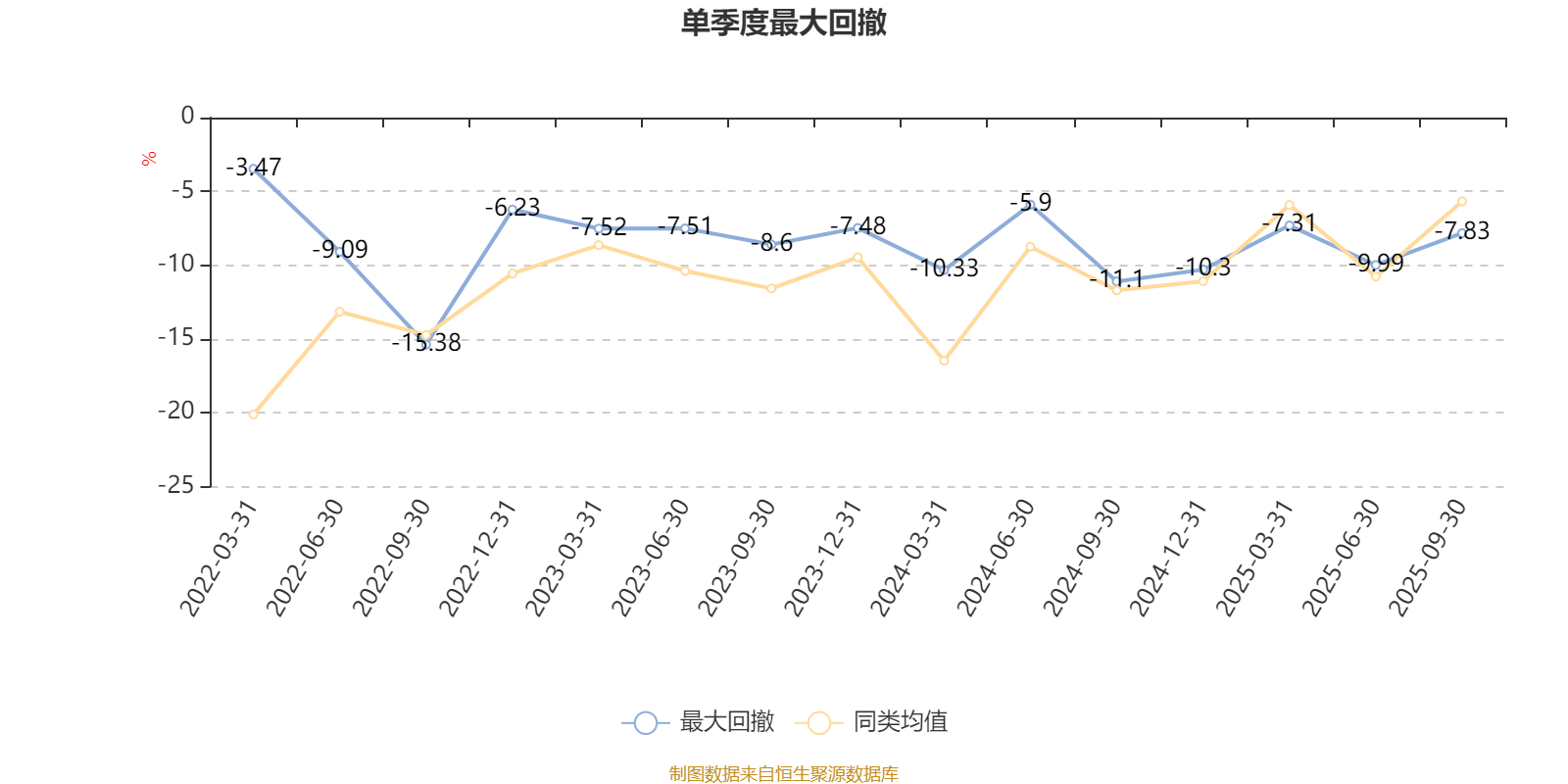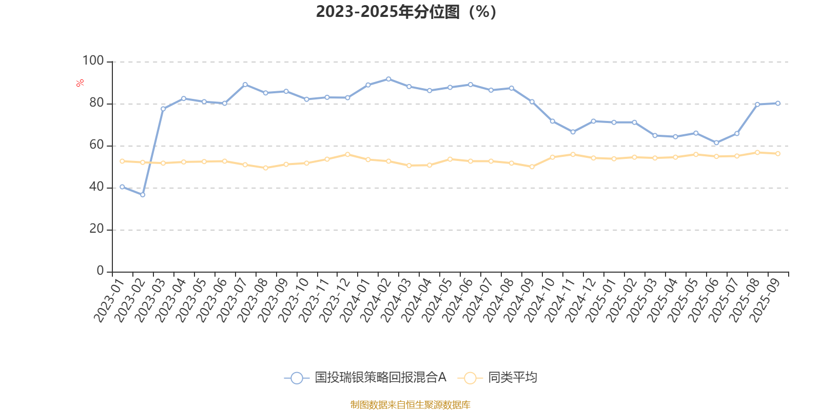 通过所选区间该基金净值增长率分位图,可以观察该基金与同类基金业绩比较情况。图为坐标原点到区间内某时点的净值增长率在同类基金中的分位数。