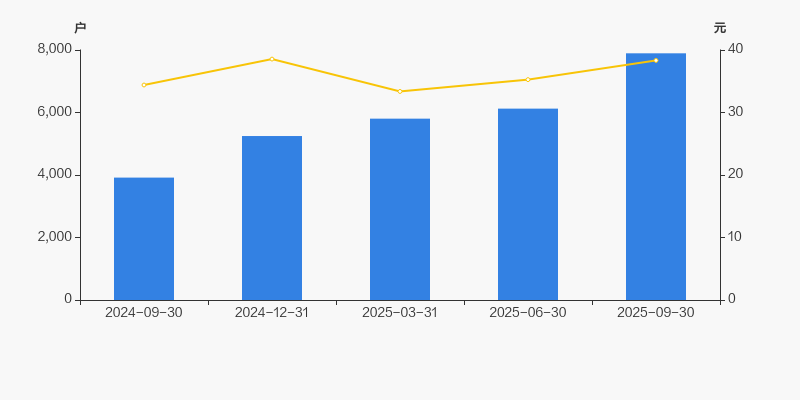 自2024年9月30日以来,公司股东户数连续4期上涨,截至目前增幅为101.53%。2024年9月30日至2025年9月30日区间股价上涨11.44%。