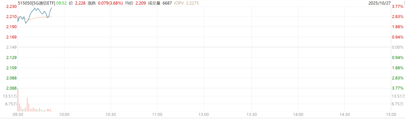 5G通信ETF(515050)涨超3%,价格再创历史新高!中际旭创股价历史首次突破500元关口