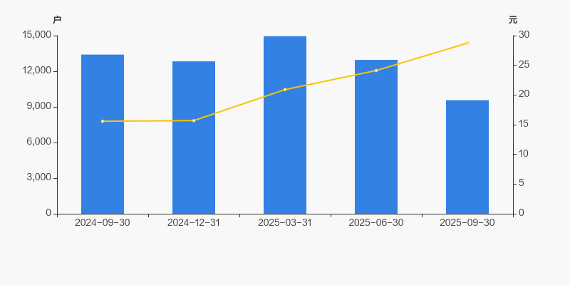 2024年9月30日至今,公司股东户数显著下降,区间跌幅为28.65%。2024年9月30日至2025年9月30日区间股价上涨84.52%。