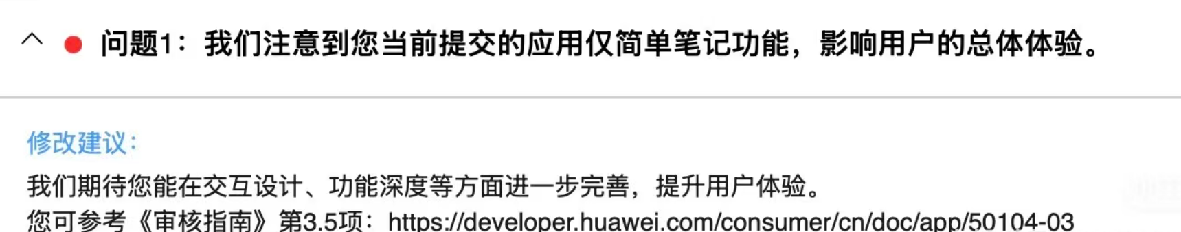 多位开发者向蓝鲸科技记者表示,目前APP上架鸿蒙应用市场的难度明显加大,被驳回理由多为“功能单一”,审核周期也较半年前有所延长。