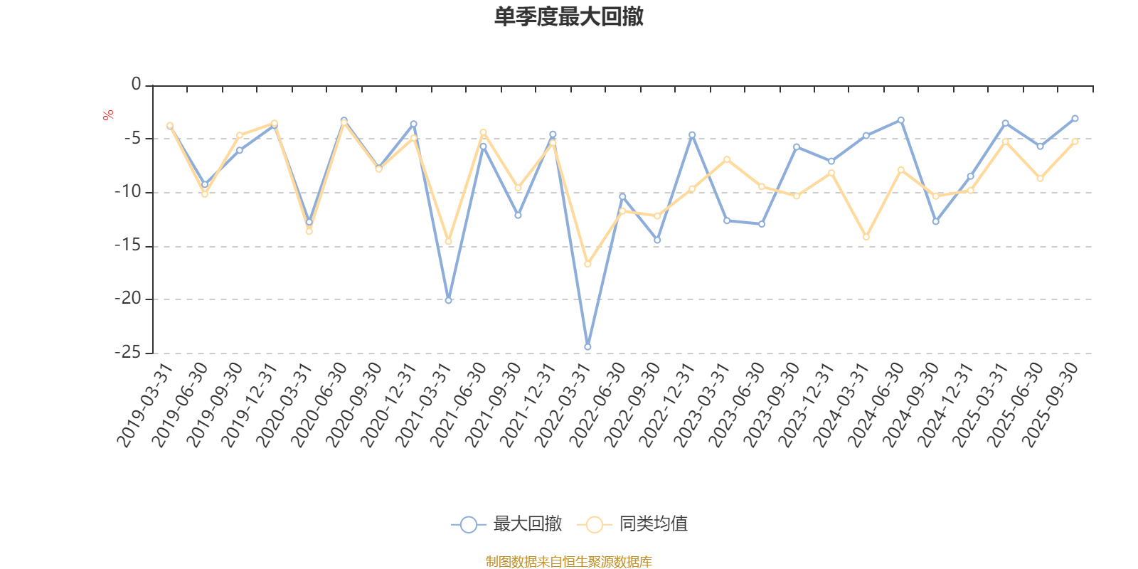 截至10月24日,基金近三年最大回撤为23.98%,同类可比基金排名349/1283。单季度最大回撤出现在2022年一季度,为24.41%。