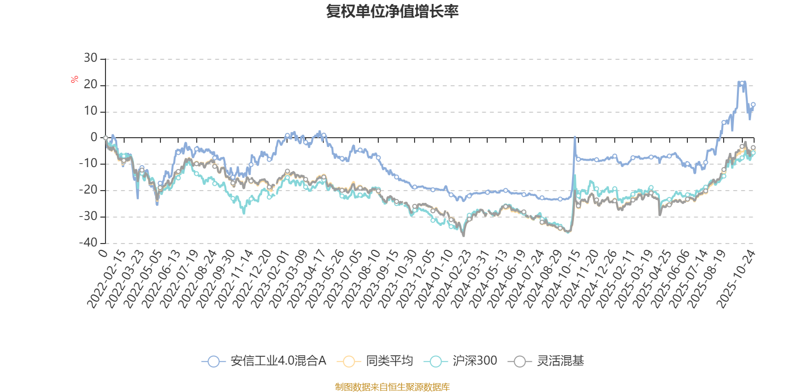 截至10月24日,安信工业4.0混合A近三个月复权单位净值增长率为17.60%,位于同类可比基金417/1287;近半年复权单位净值增长率为21.46%,位于同类可比基金673/1287;近一年复权单位净值增长率为22.78%,位于同类可比基金611/1287;近三年复权单位净值增长率为30.74%,位于同类可比基金301/1286。