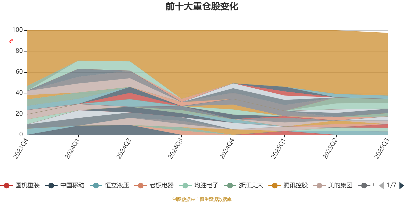 截至2025年三季度末,基金十大重仓股分别是拓普集团、优必选、大洋电机、三花智控、科达利、汇川技术、均胜电子、恒立液压、宁波华翔、双环传动。