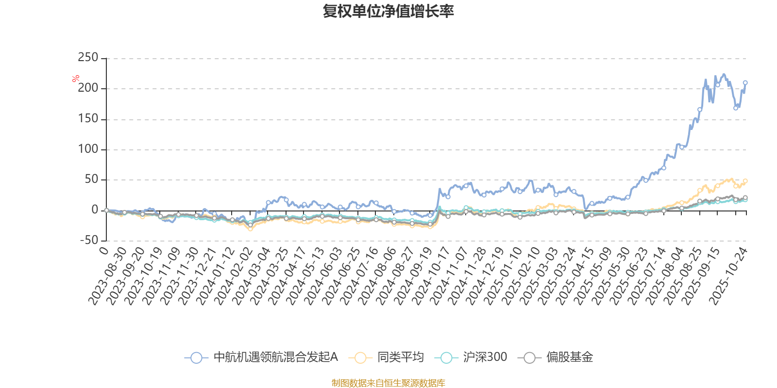 截至10月24日,中航机遇领航混合发起A近三个月复权单位净值增长率为66.53%,位于同类可比基金2/229;近半年复权单位净值增长率为177.09%,位于同类可比基金2/229;近一年复权单位净值增长率为120.88%,位于同类可比基金2/213。