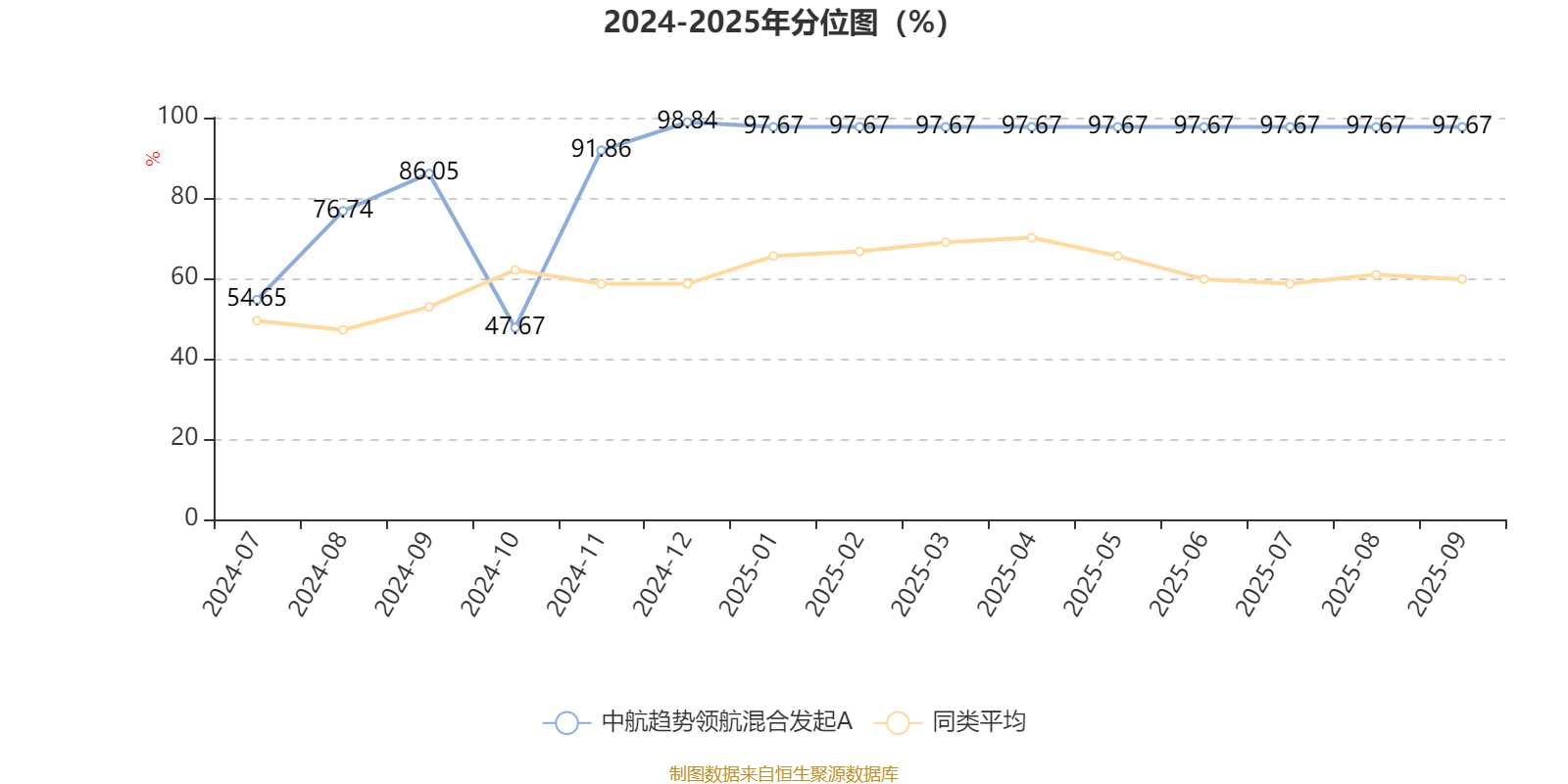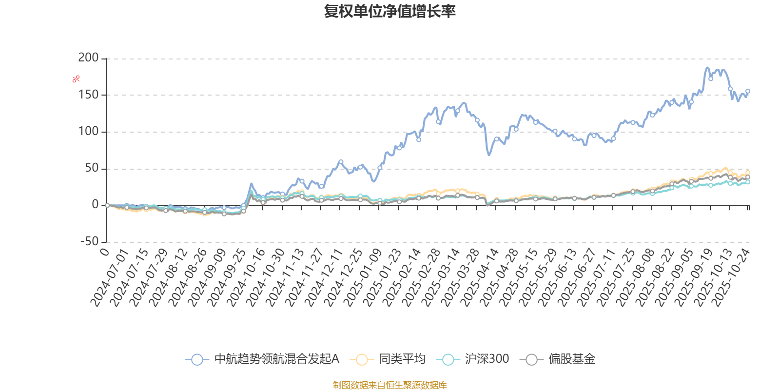 截至10月24日,中航趋势领航混合发起A近三个月复权单位净值增长率为19.78%,位于同类可比基金51/100;近半年复权单位净值增长率为22.89%,位于同类可比基金70/99;近一年复权单位净值增长率为118.38%,位于同类可比基金2/90。