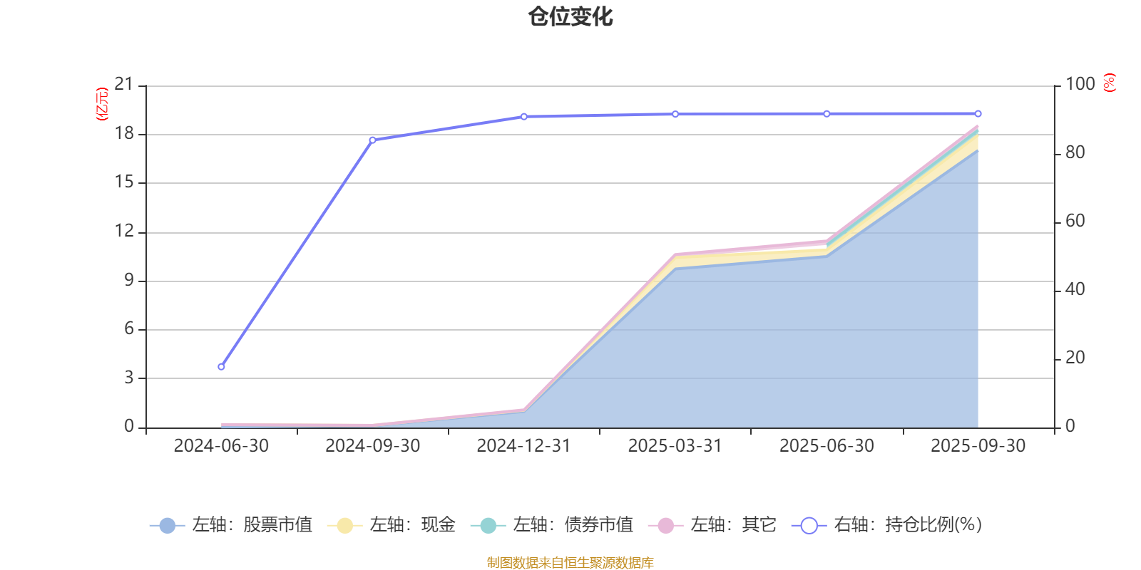 据定期报告数据统计,成立以来平均股票仓位为77.97%,同类平均为87%。2025年三季度末基金达到91.76%的最高仓位,2024年上半年末最低,为17.76%。