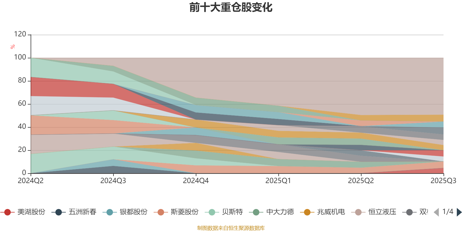 该基金持股集中度较高。截至2025年三季度末,基金十大重仓股分别是汉威科技、新泉股份、斯菱股份、震裕科技、安培龙、浙江荣泰、美湖股份、伟创电气、银轮股份、均胜电子。