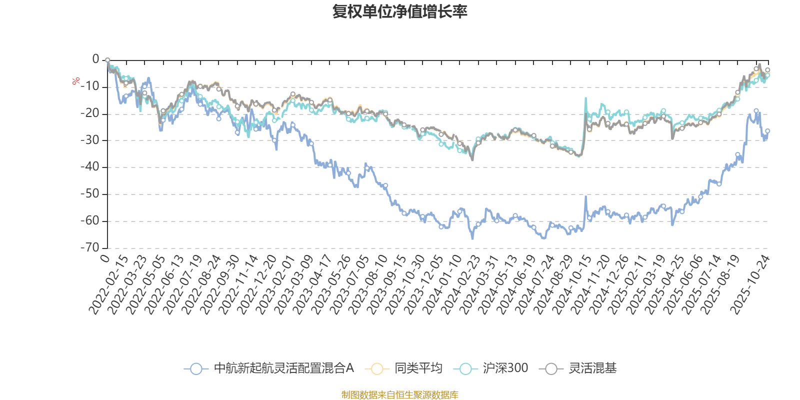 截至10月24日,中航新起航灵活配置混合A近三个月复权单位净值增长率为24.33%,位于同类可比基金253/1287;近半年复权单位净值增长率为66.86%,位于同类可比基金67/1287;近一年复权单位净值增长率为77.56%,位于同类可比基金37/1287;近三年复权单位净值增长率为-4.57%,位于同类可比基金1041/1286。
