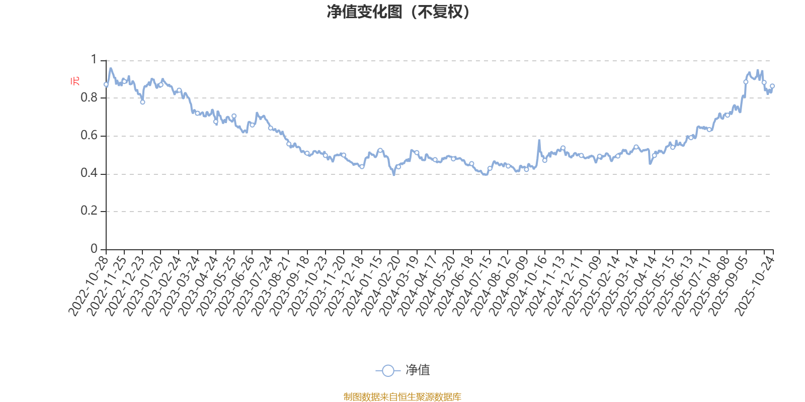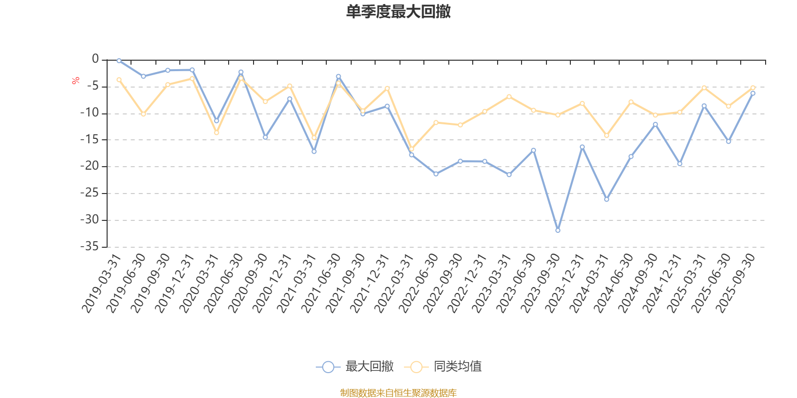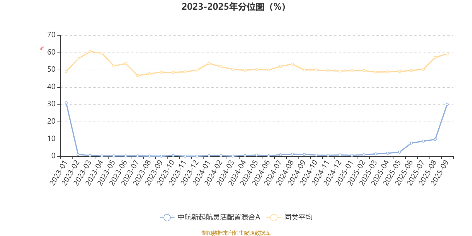 通过所选区间该基金净值增长率分位图,可以观察该基金与同类基金业绩比较情况。图为坐标原点到区间内某时点的净值增长率在同类基金中的分位数。