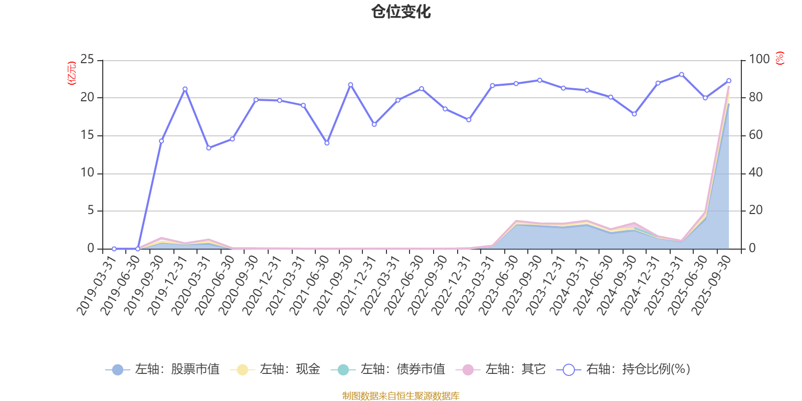 据定期报告数据统计,近三年平均股票仓位为83.53%,同类平均为72.16%。2025年一季度末基金达到92.41%的最高仓位,2020年一季度末最低,为53.47%。