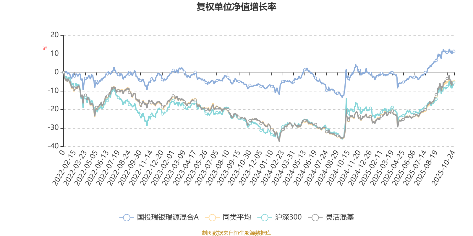 截至10月24日,国投瑞银瑞源混合A近三个月复权单位净值增长率为8.69%,位于同类可比基金755/1287;近半年复权单位净值增长率为17.71%,位于同类可比基金793/1287;近一年复权单位净值增长率为13.48%,位于同类可比基金853/1287;近三年复权单位净值增长率为19.89%,位于同类可比基金491/1286。