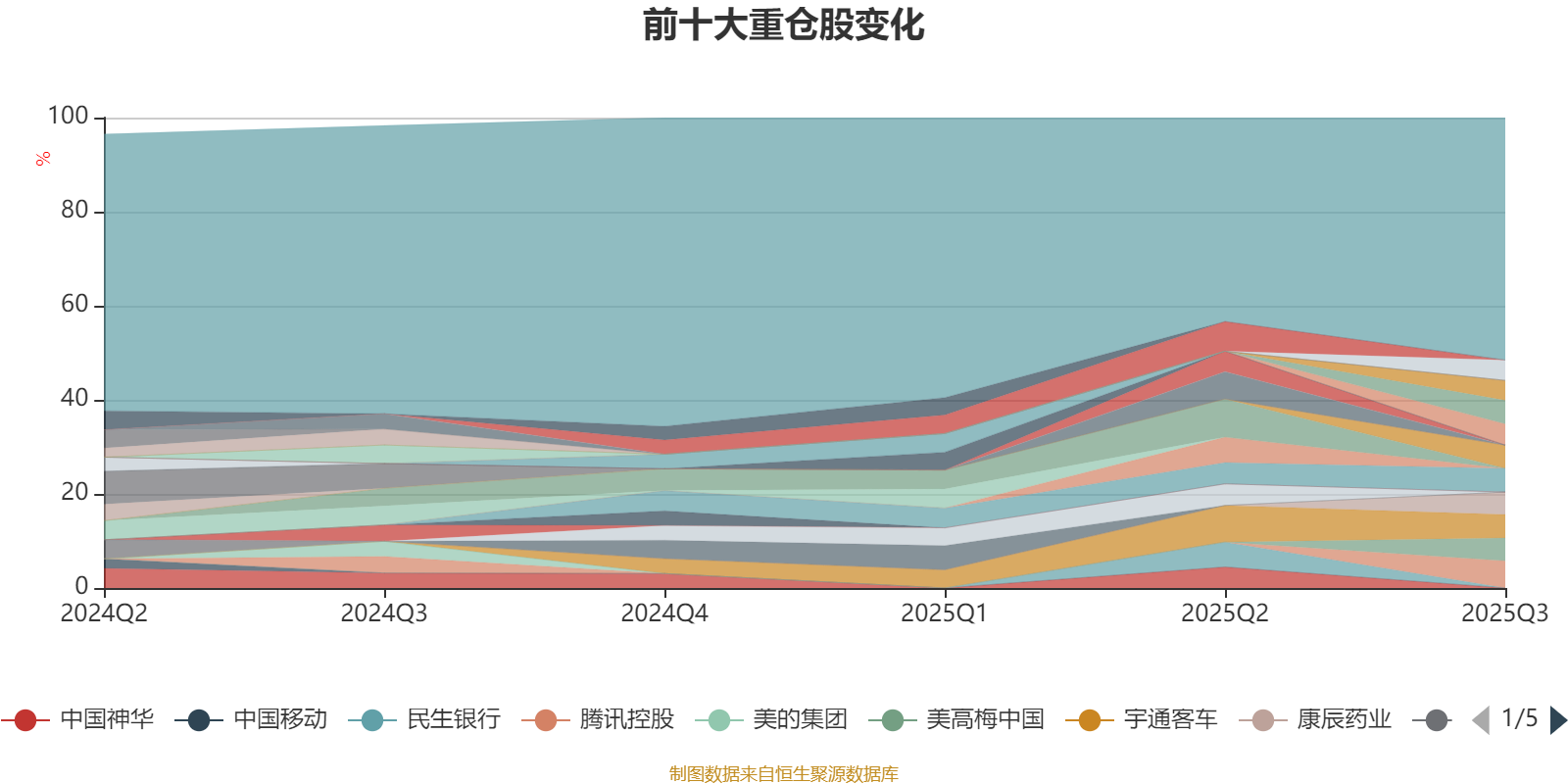 截至2025年三季度末,基金十大重仓股分别是腾讯控股、招商银行、宇通客车、中金公司、新华保险、美高梅中国、康辰药业、牧原股份、杭州银行、VTECH HOLDINGS。