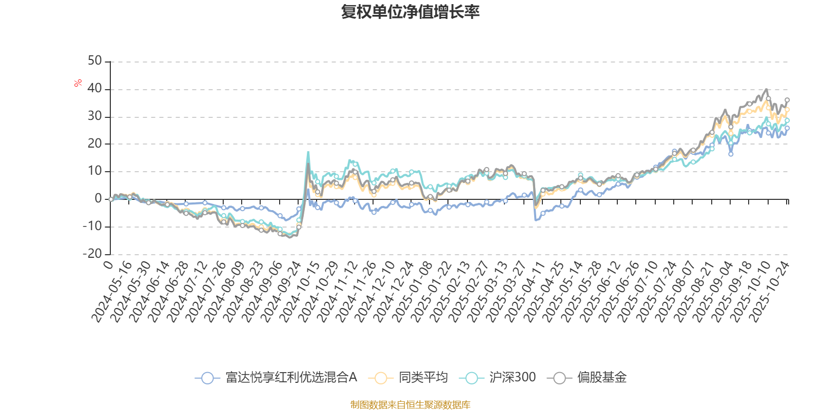 截至10月24日,富达悦享红利优选混合A近三个月复权单位净值增长率为7.13%,位于同类可比基金501/689;近半年复权单位净值增长率为29.11%,位于同类可比基金289/688;近一年复权单位净值增长率为27.01%,位于同类可比基金321/653。