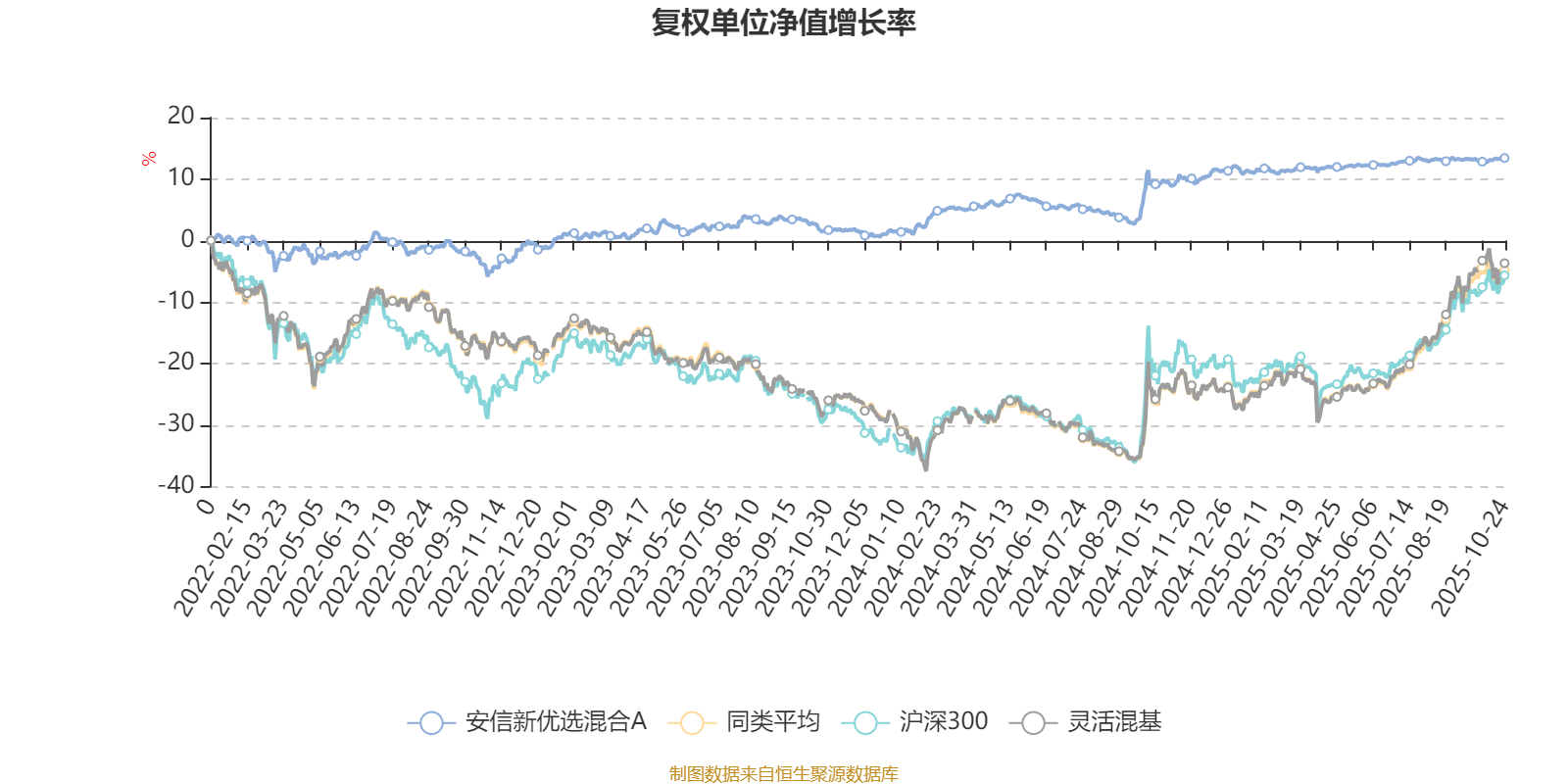 截至10月24日,安信新优选混合A近三个月复权单位净值增长率为0.10%,位于同类可比基金1206/1287;近半年复权单位净值增长率为1.34%,位于同类可比基金1254/1287;近一年复权单位净值增长率为3.60%,位于同类可比基金1180/1287;近三年复权单位净值增长率为17.86%,位于同类可比基金537/1286。