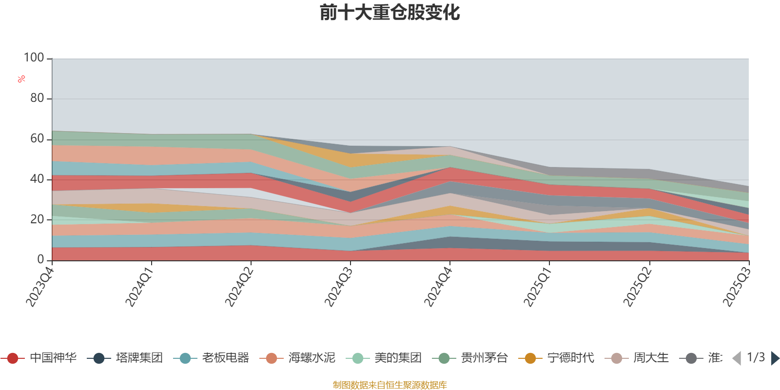截至2025年三季度末,基金十大重仓股分别是老板电器、海螺水泥、中国建筑、建设银行、中国神华、圆通速递、重庆百货、江苏银行、周大生、招商银行。