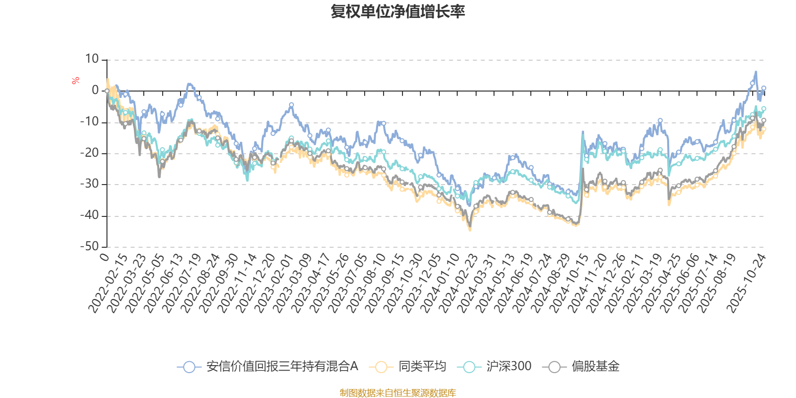 截至10月24日,安信价值回报三年持有混合A近三个月复权单位净值增长率为13.50%,位于同类可比基金138/265;近半年复权单位净值增长率为25.82%,位于同类可比基金148/265;近一年复权单位净值增长率为24.22%,位于同类可比基金160/265;近三年复权单位净值增长率为34.73%,位于同类可比基金56/253。
