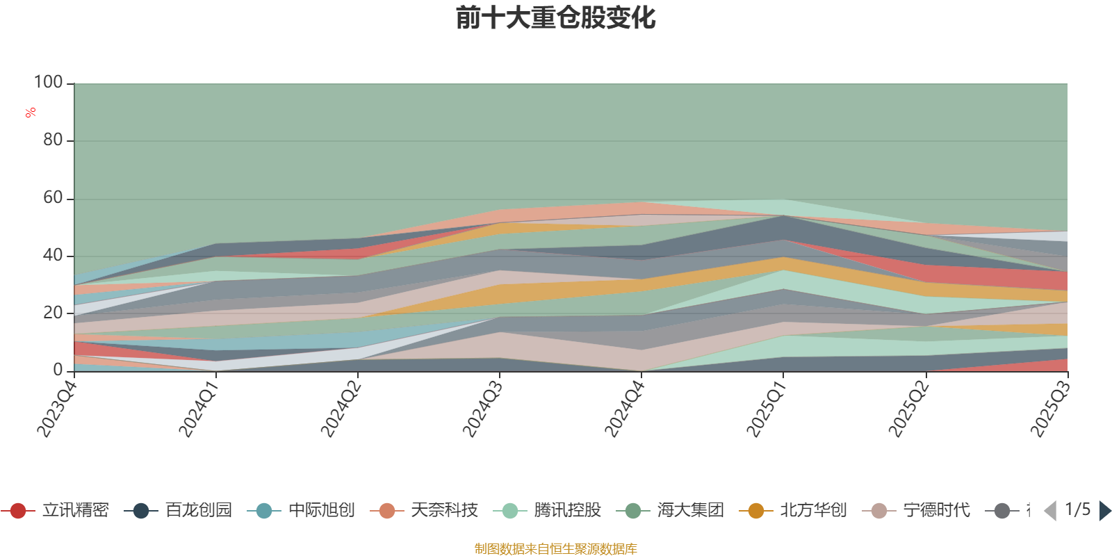截至2025年三季度末,基金十大重仓股分别是宁德时代、思源电气、东材科技、三一重工、北方华创、立讯精密、腾讯控股、恒瑞医药、百龙创园、拓荆科技。