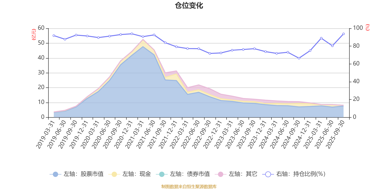 据定期报告数据统计,近三年平均股票仓位为77.04%,同类平均为72.19%。2020年末基金达到93.92%的最高仓位,2024年三季度末最低,为66.46%。