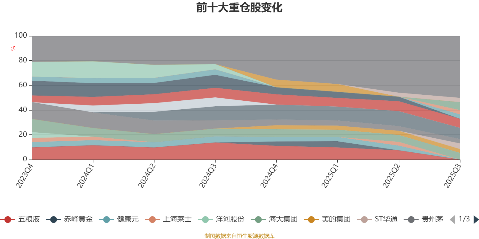截至2025年三季度末,基金十大重仓股分别是格力电器、人福医药、山金国际、海大集团、ST华通、药明康德、科伦药业、贵州茅台、星宇股份、美的集团。