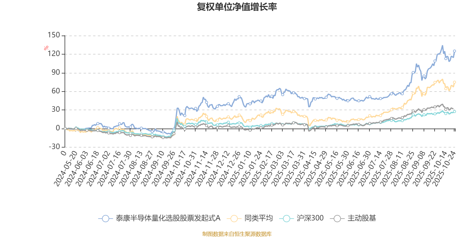 截至10月24日,泰康半导体量化选股股票发起式A近三个月复权单位净值增长率为46.55%,位于同类可比基金20/63;近半年复权单位净值增长率为51.63%,位于同类可比基金30/63;近一年复权单位净值增长率为70.09%,位于同类可比基金22/61。