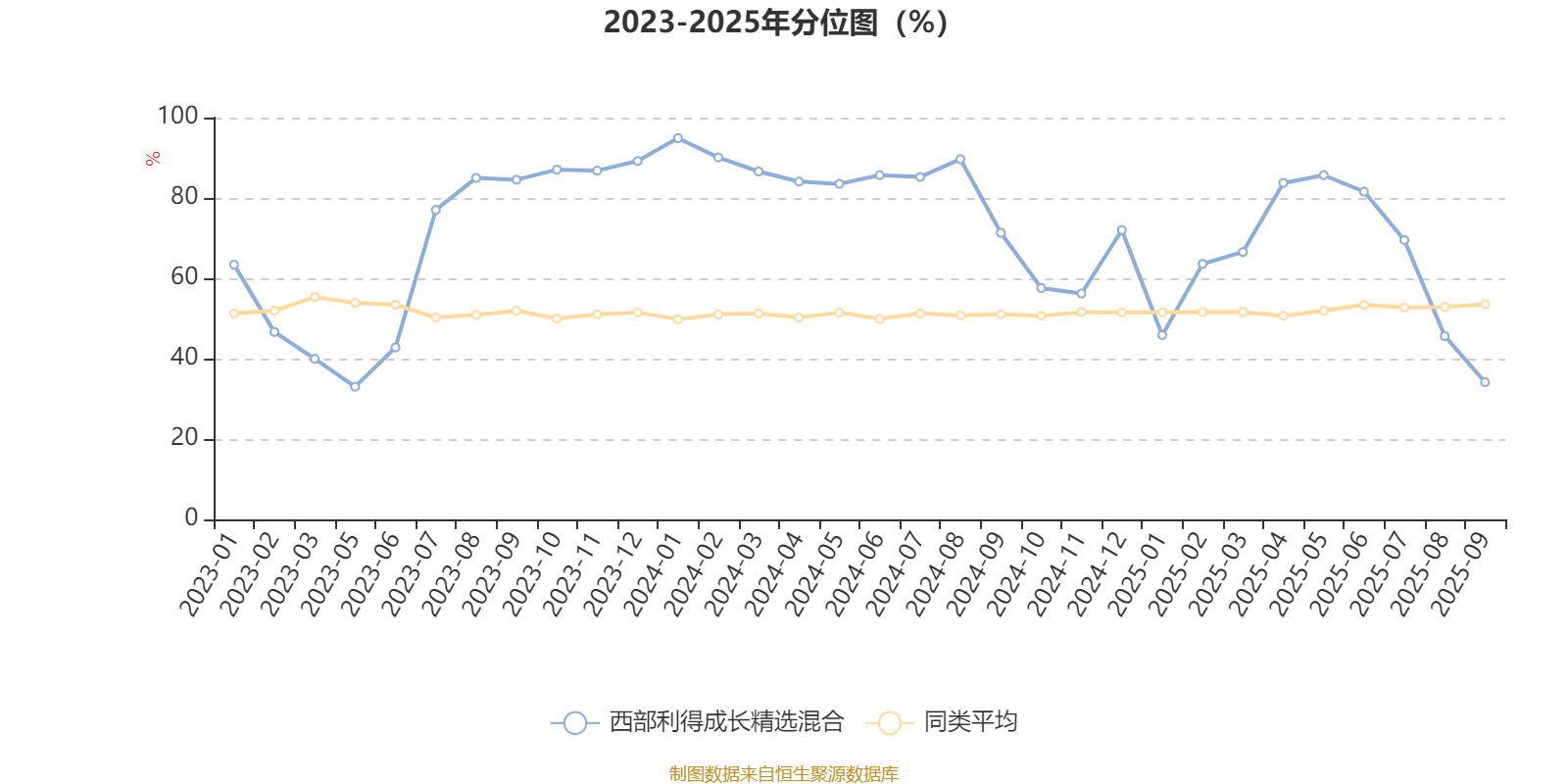 通过所选区间该基金净值增长率分位图,可以观察该基金与同类基金业绩比较情况。图为坐标原点到区间内某时点的净值增长率在同类基金中的分位数。