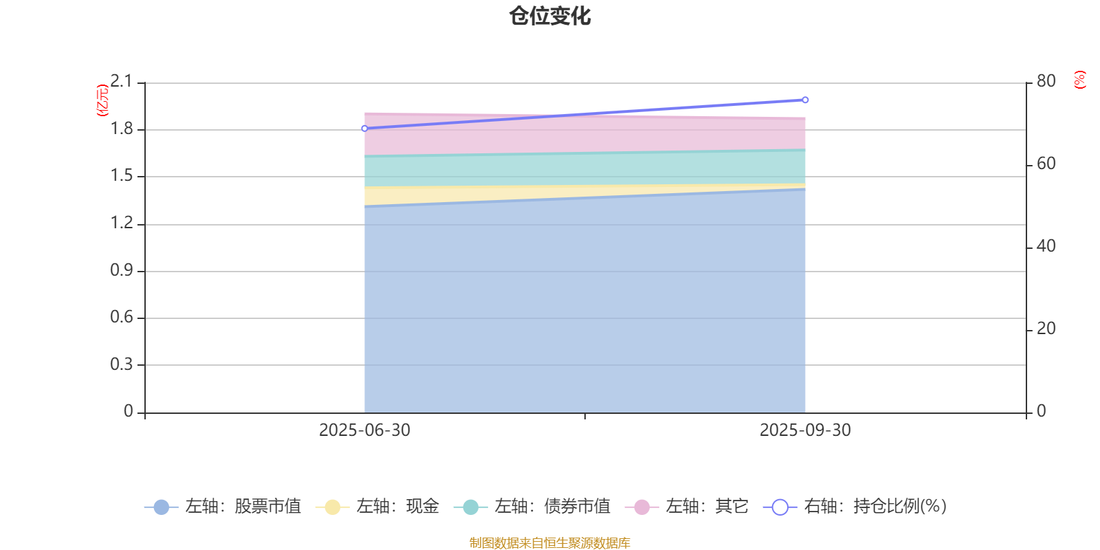 据定期报告数据统计,成立以来平均股票仓位为72.33%,同类平均为83.5%。2025年三季度末基金达到75.79%的最高仓位,2025年上半年末最低,为68.86%。