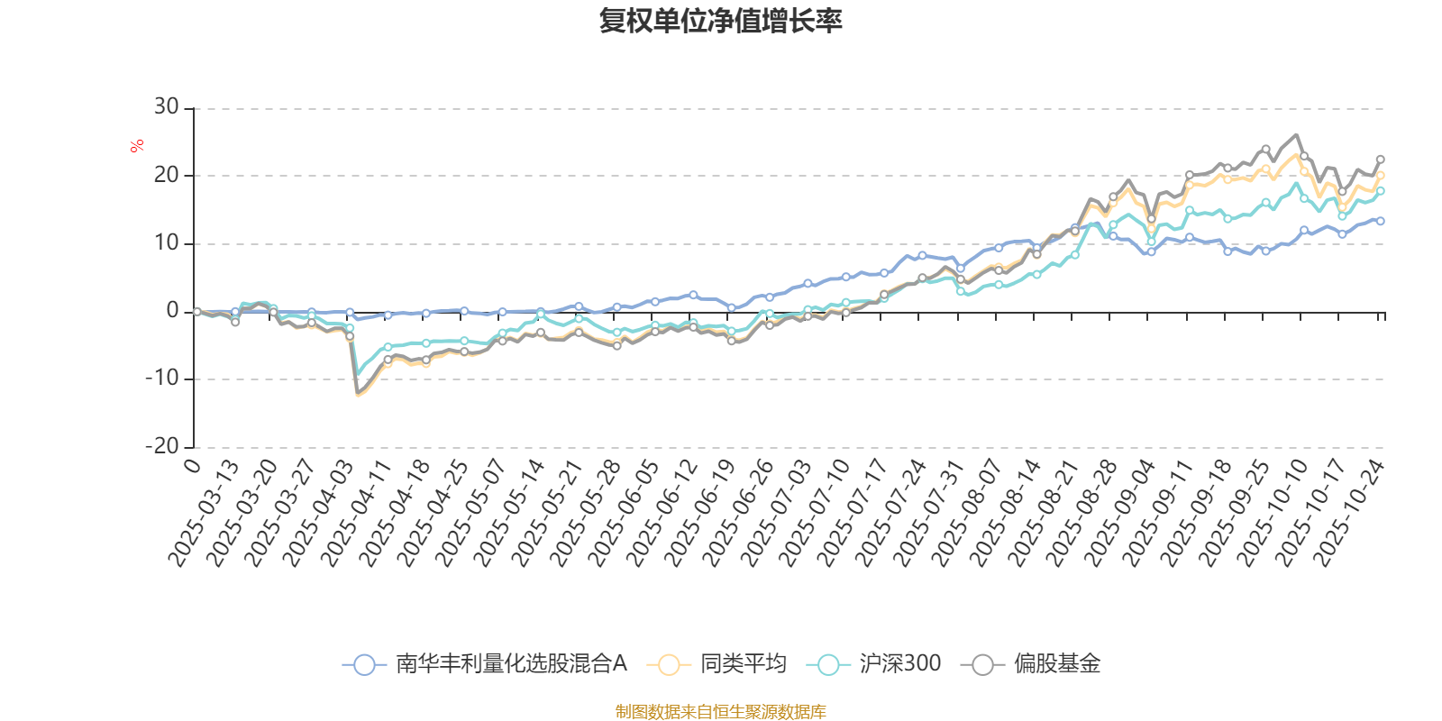 截至10月24日,南华丰利量化选股混合A近三个月复权单位净值增长率为4.67%,位于同类可比基金556/689;近半年复权单位净值增长率为13.11%,位于同类可比基金576/688。