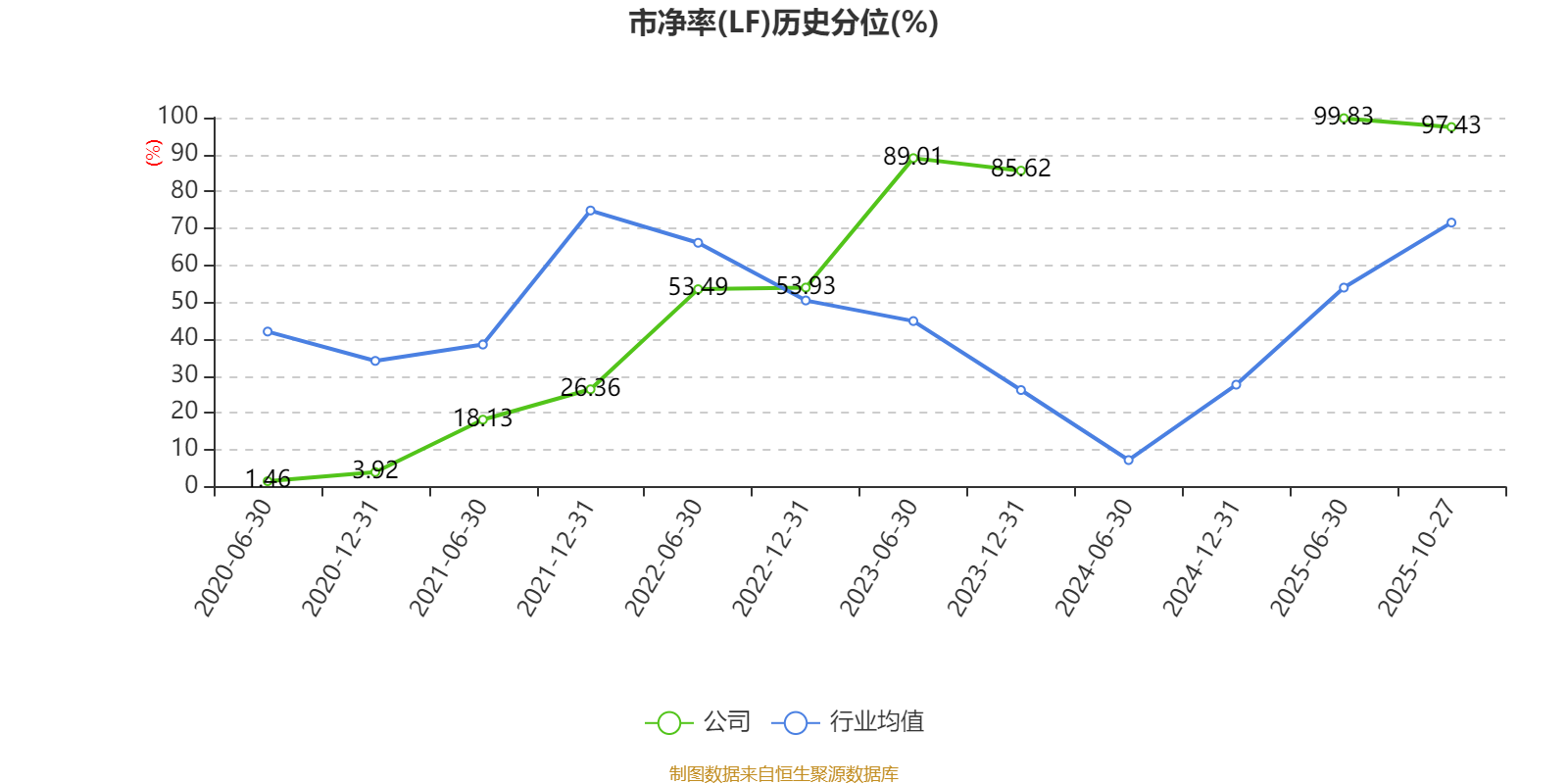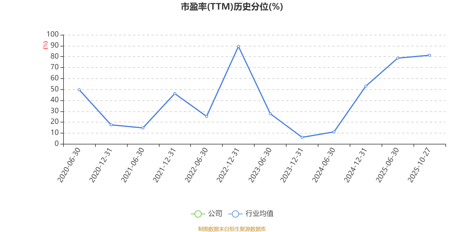 市盈率、市净率为负时,不显示当期分位数,会导致折线图中断。