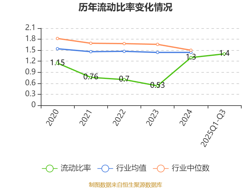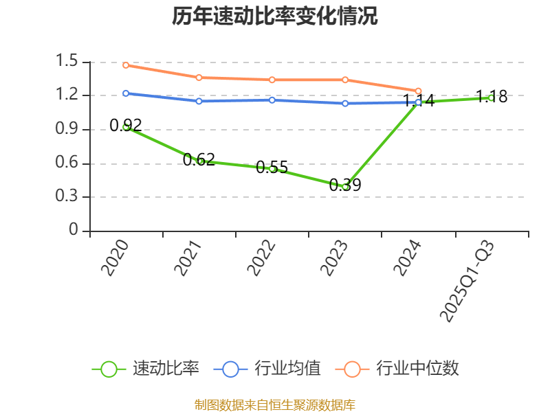 2025年前三季度,公司流动比率为1.4,速动比率为1.18。