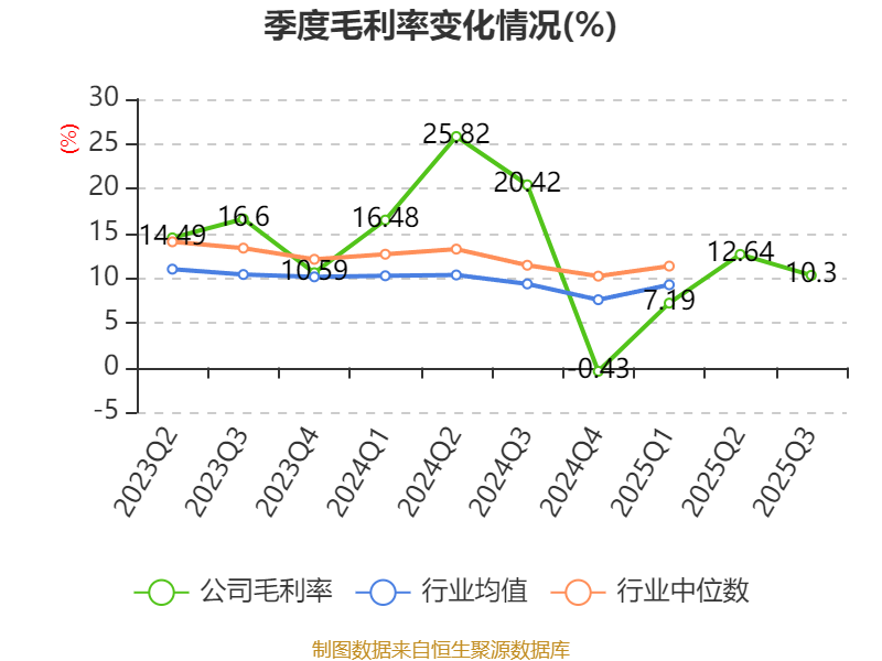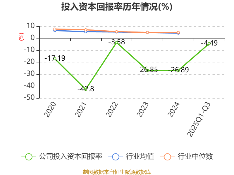 盈利能力方面, 2025年前三季度公司加权平均净资产收益率为-8.26%。公司2025年前三季度投入资本回报率为-4.49%,较上年同期上升3.36个百分点。