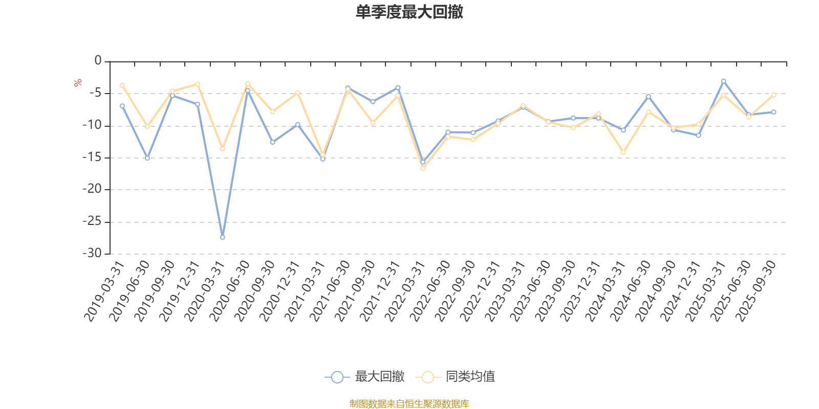 截至10月24日,基金近三年最大回撤为29.55%,同类可比基金排名536/1283。单季度最大回撤出现在2020年一季度,为27.42%。