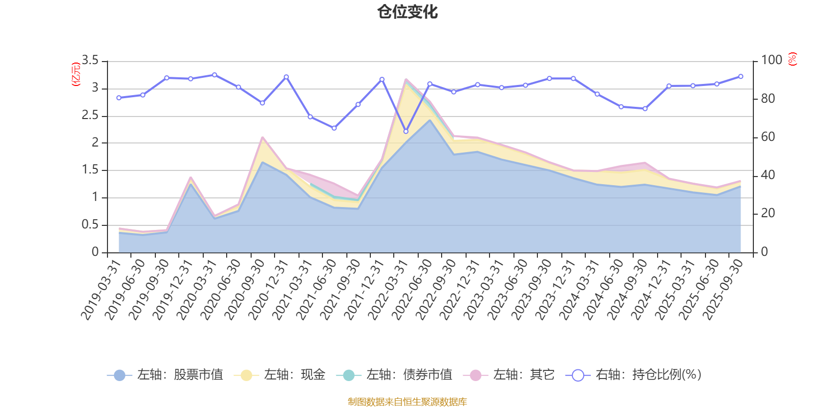 据定期报告数据统计,近三年平均股票仓位为85.93%,同类平均为72.16%。2020年一季度末基金达到92.79%的最高仓位,2022年一季度末最低,为63.27%。