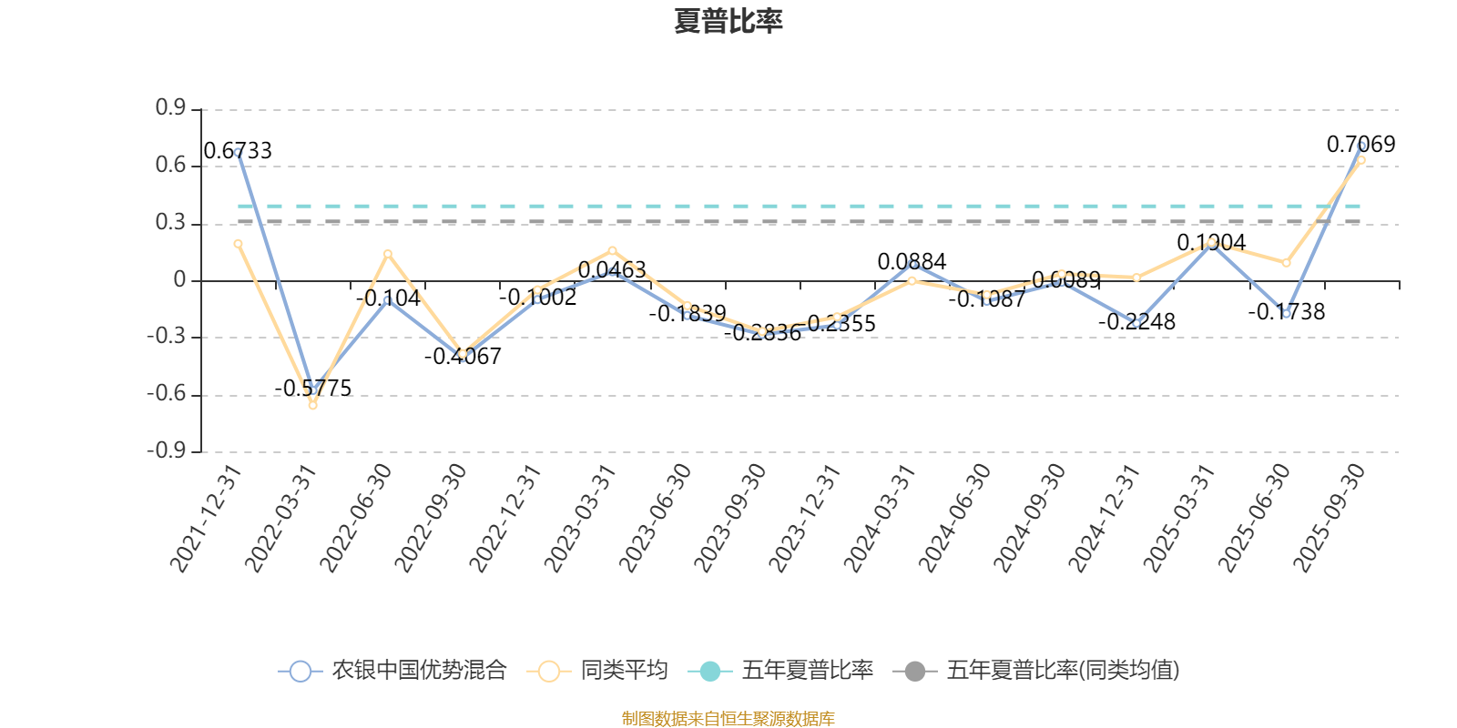 截至9月30日,基金近三年夏普比率为0.2259,位于同类可比基金1019/1285。