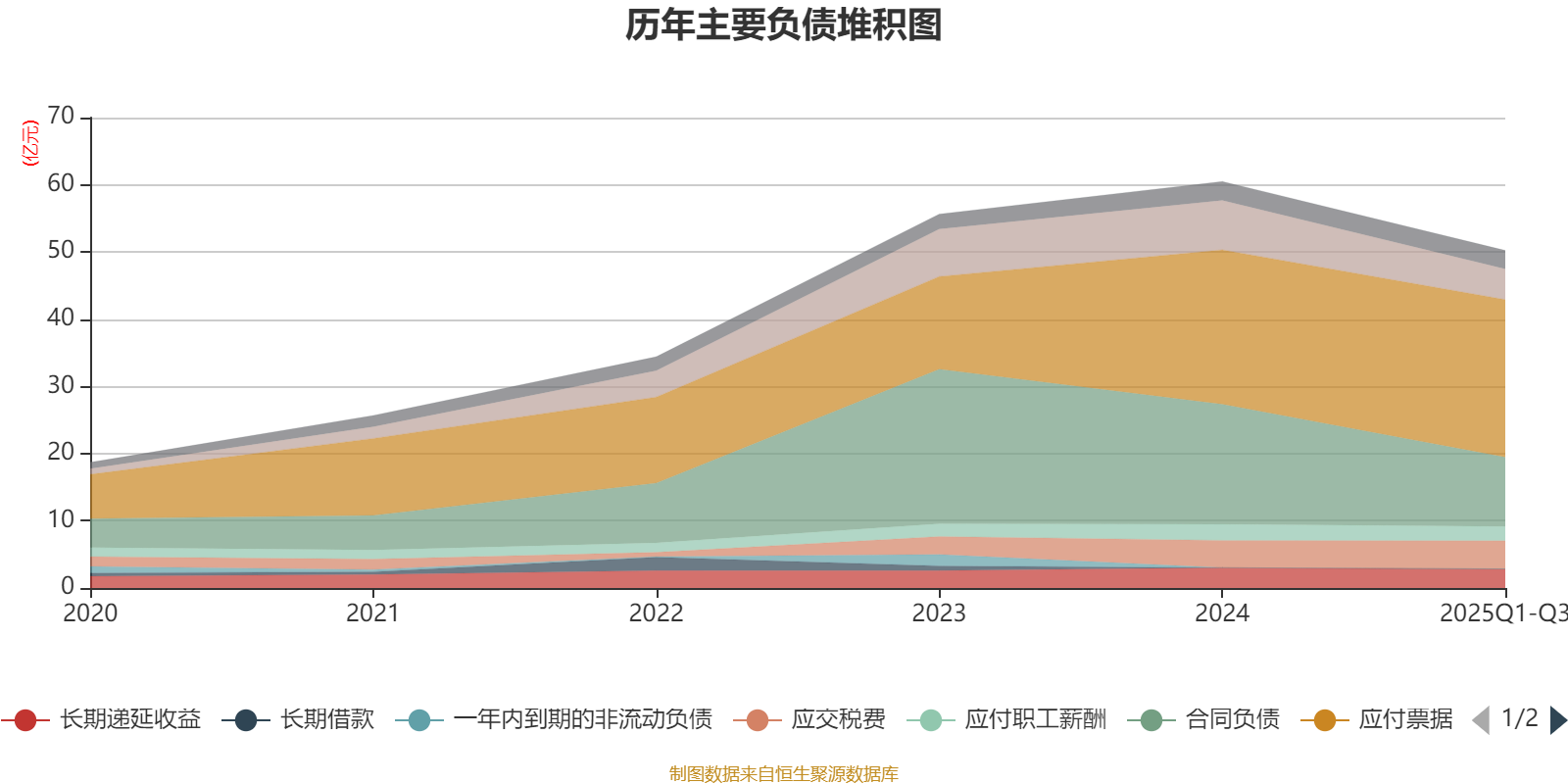 负债重大变化方面,截至2025年三季度末,公司合同负债较上年末减少42.33%,占公司总资产比重下降4.94个百分点;短期借款较上年末减少37.92%,占公司总资产比重下降1.79个百分点;应付票据及应付账款较上年末增加2.07%,占公司总资产比重上升1.24个百分点;衍生金融负债较上年末减少99.35%,占公司总资产比重下降0.23个百分点。